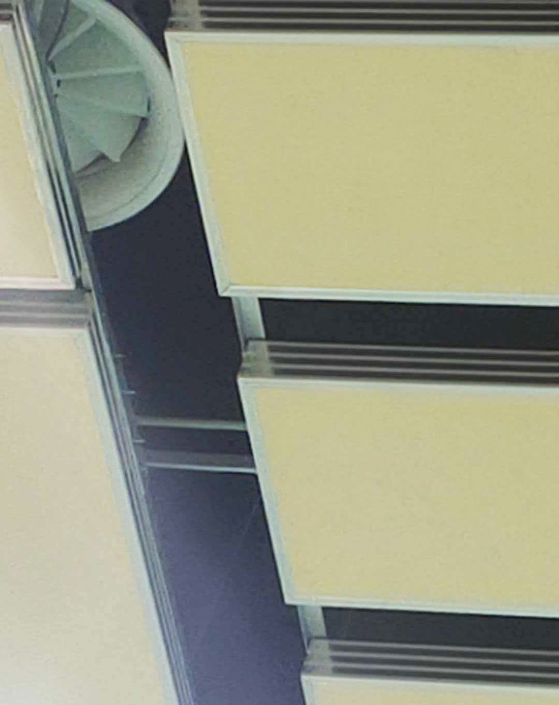 9、产品外观:根据 GB/T25998-2020《矿物棉装饰吸声板》标准规定正面没有影响装饰效果的污迹、划痕、色彩不匀、图案不完整等缺陷;产品没有裂纹、破损、扭曲,没有影响使用及装饰效果的缺角缺棱。